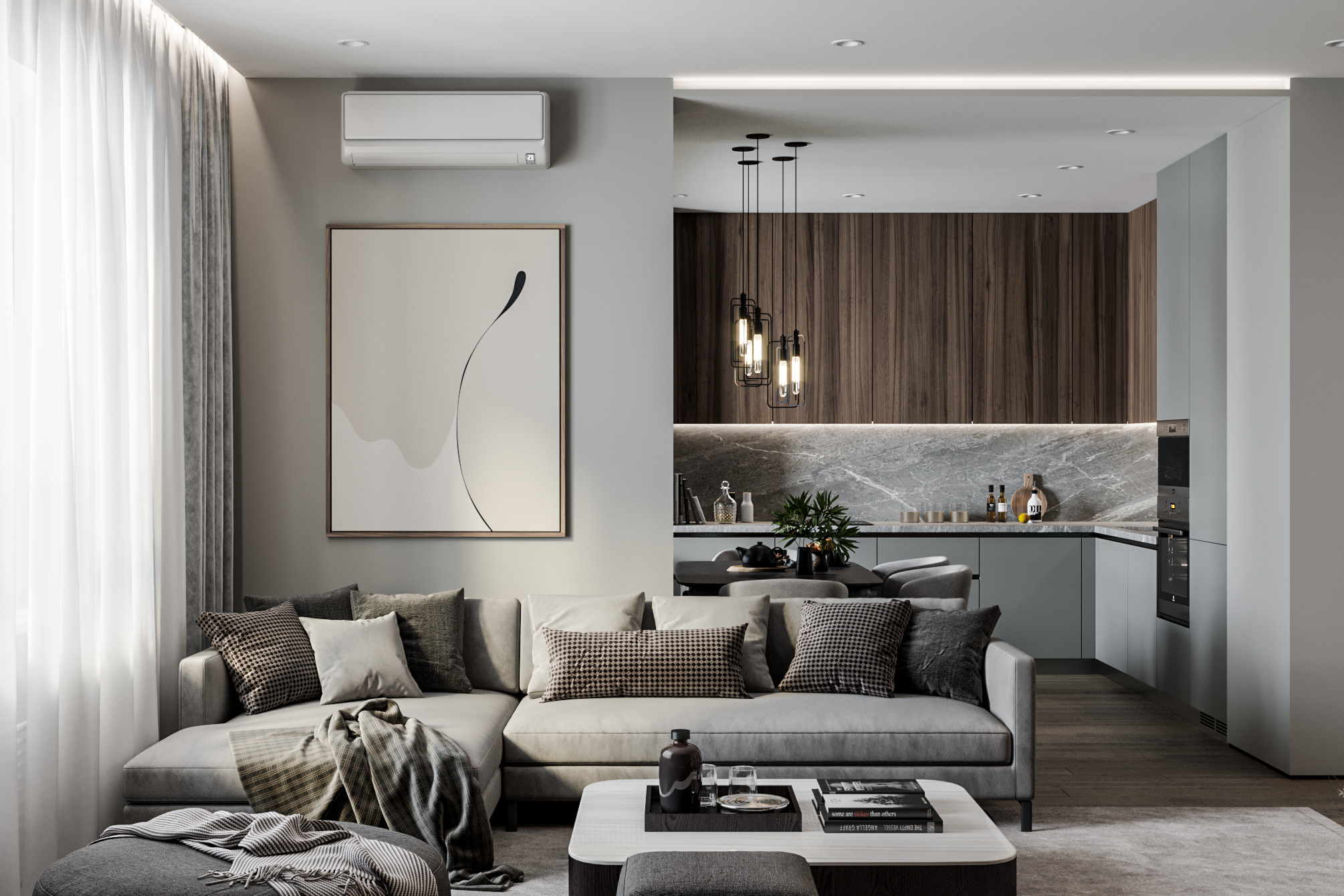 Именно так мы и поступили в нашем проекте — место для чилла органично вписалось как по цветовому решению, так и в плане функциональности. Также с раннего утра и до наступления вечера можно не пользоваться светильниками благодаря естественному источнику света, проникающему через окна.